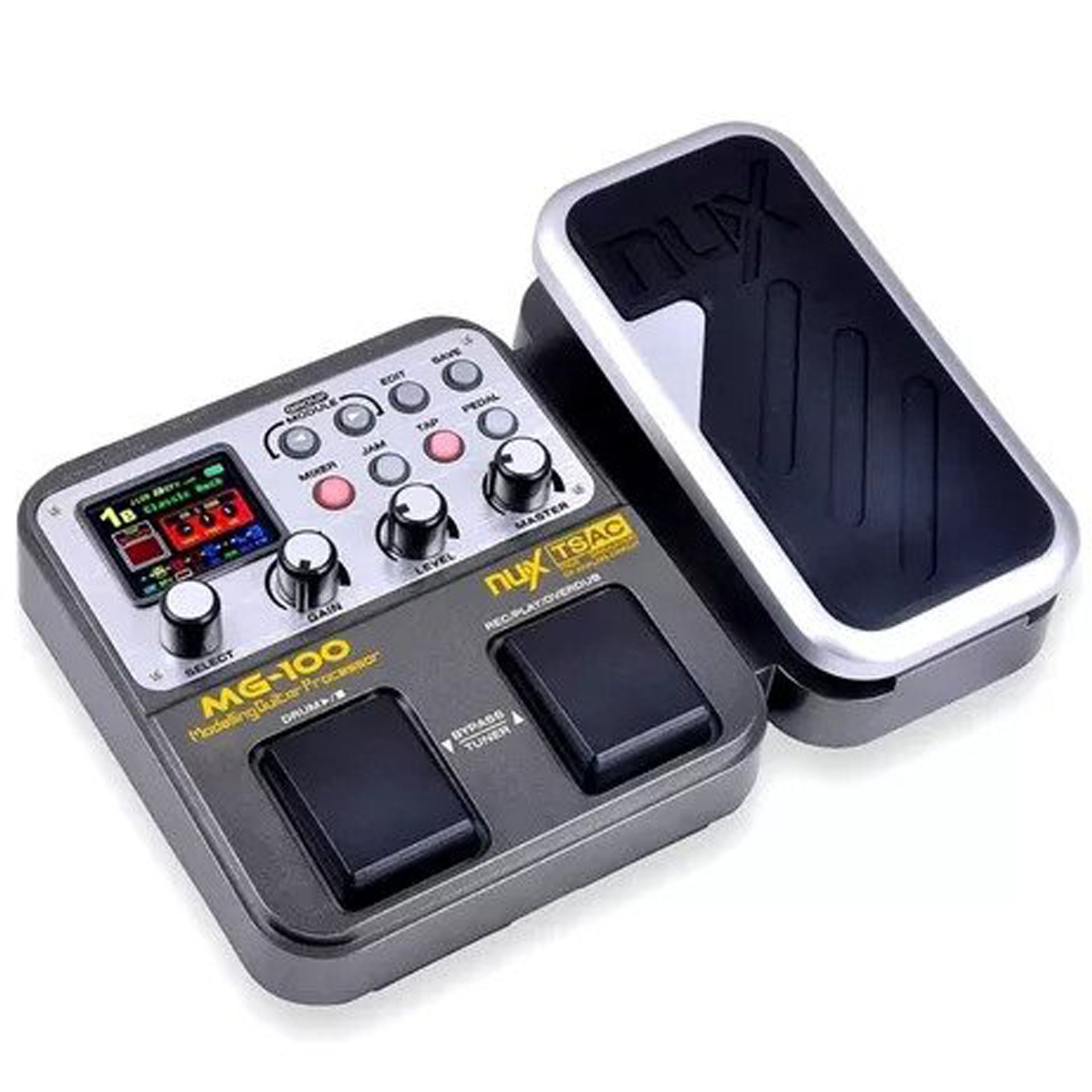 Pedaleira multi efeito com 13 modelagens de amplificadores, 58 efeitos e 11 modelos de gabinete NUX MG 100 é uma pedaleira de guitarra que oferece uma diversa gama de efeitos, incluindo variedade de distorção, compressão, modulação, delay, reverb, além de modelos de gabinetes e amplificadores. Com sua interface de uso facilitada, você pode alcançar os controles principais facilmente usando os knobs de Ganho, Level e Master. A Tela LCD TFT de alta resolução permite controlar e ajudar todos os parâmetros com clareza e precisão. É tudo sobre o som. Adicione 13 modelagens de amplificadores de guitarra, 58 efeitos com a capacidade de usar até 8 deles simultaneamente e 11 modelos de gabinetes. Mais 56 padrões de ritmos integrados, afinador cromático e estação de loop. Especificações técnicas: Um total de 58 efeitos, até 8 podem ser usados simultaneamente 13 modelos de amplificadores clássicos com tecnologia True Simulation of Analog Circuit (TSAC) 11 modelos de caixas de guitarra. Um total de 72 presets, 36 presets de fábrica + 36 presets do usuário. Modelagem de EQ passivo de 3 bandas vintage para cada modelo de amplificador. EQ gráfico de 6 bandas projetado especificamente para guitarra elétrica (120 Hz, 250 Hz, 750 Hz, 1,6 kHz, 3,2 kHz, 6,4 KHz). Troca de presets rápida e sem ruído. Bateria eletrônica integrada com sons PCM e qualidade de CD. Loop de frase de até 40 segundos para uma melhor tocabilidade. Tap tempo para efeitos baseados em tempo e bateria eletrônica. O conector AUX IN facilita a prática, você pode tocar junto com sua música ou backing track favoritos. O pedal de expressão permite ajustar os parâmetros de volume ou efeito em tempo real. Grande painel LCD TFT colorido (160×128), interface gráfica que torna a operação fácil e intuitiva. DSP de 32 bits de nova geração, conversor AD/DA de 24 bits e 44,1 kHz de alta performance. Funciona com baterias e fonte AC. Seis pilhas alcalinas AA podem ser usadas continuamente por 8 horas.